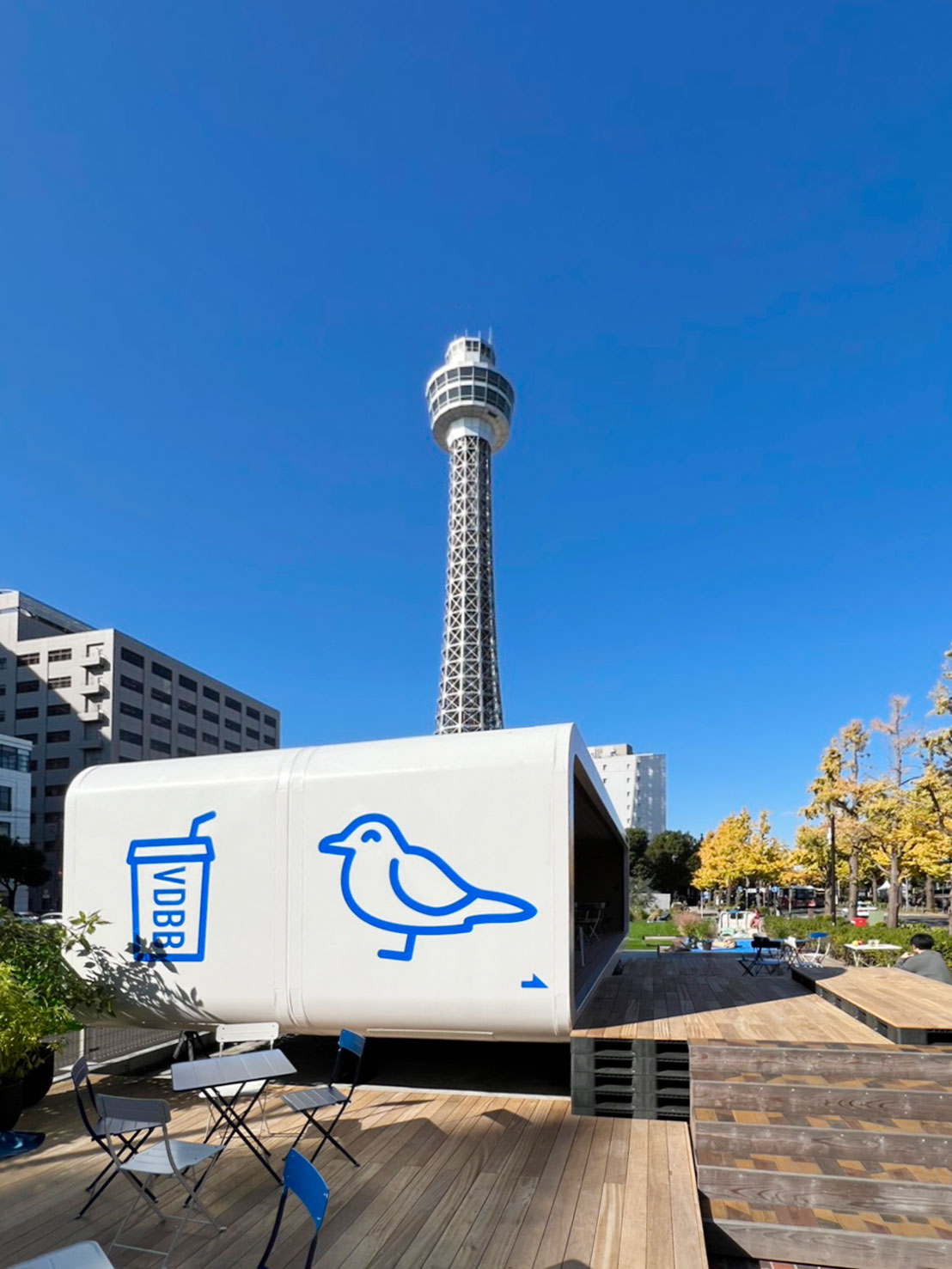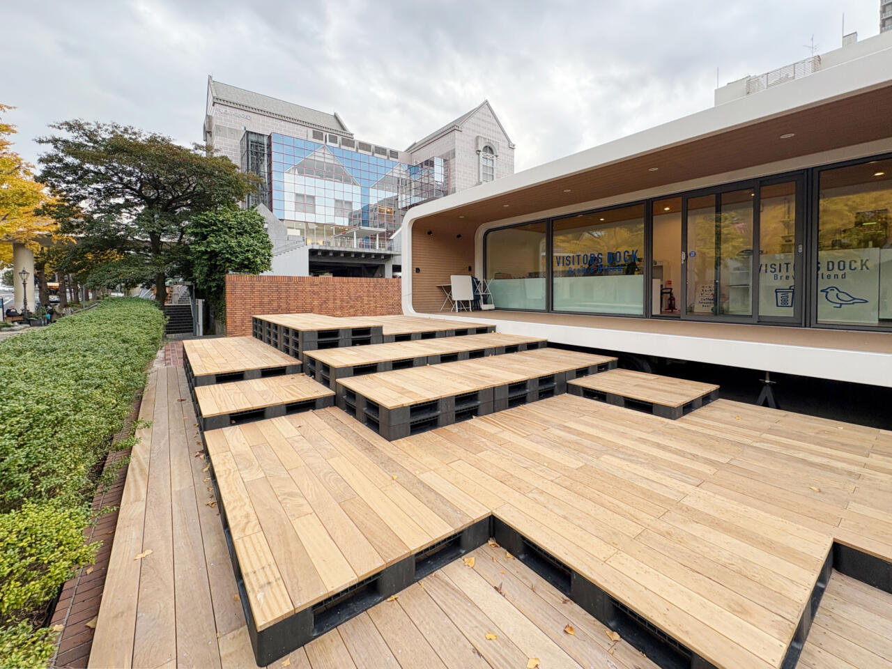 A project repurposing two trailer houses into a cafe to effectively utilize vacant land along Yamashita Park Street in Yokohama. The concept envisions the trailers as “ships” and the wooden deck as the “pier” receiving them, creating a symbolic composition connecting the city and the sea.